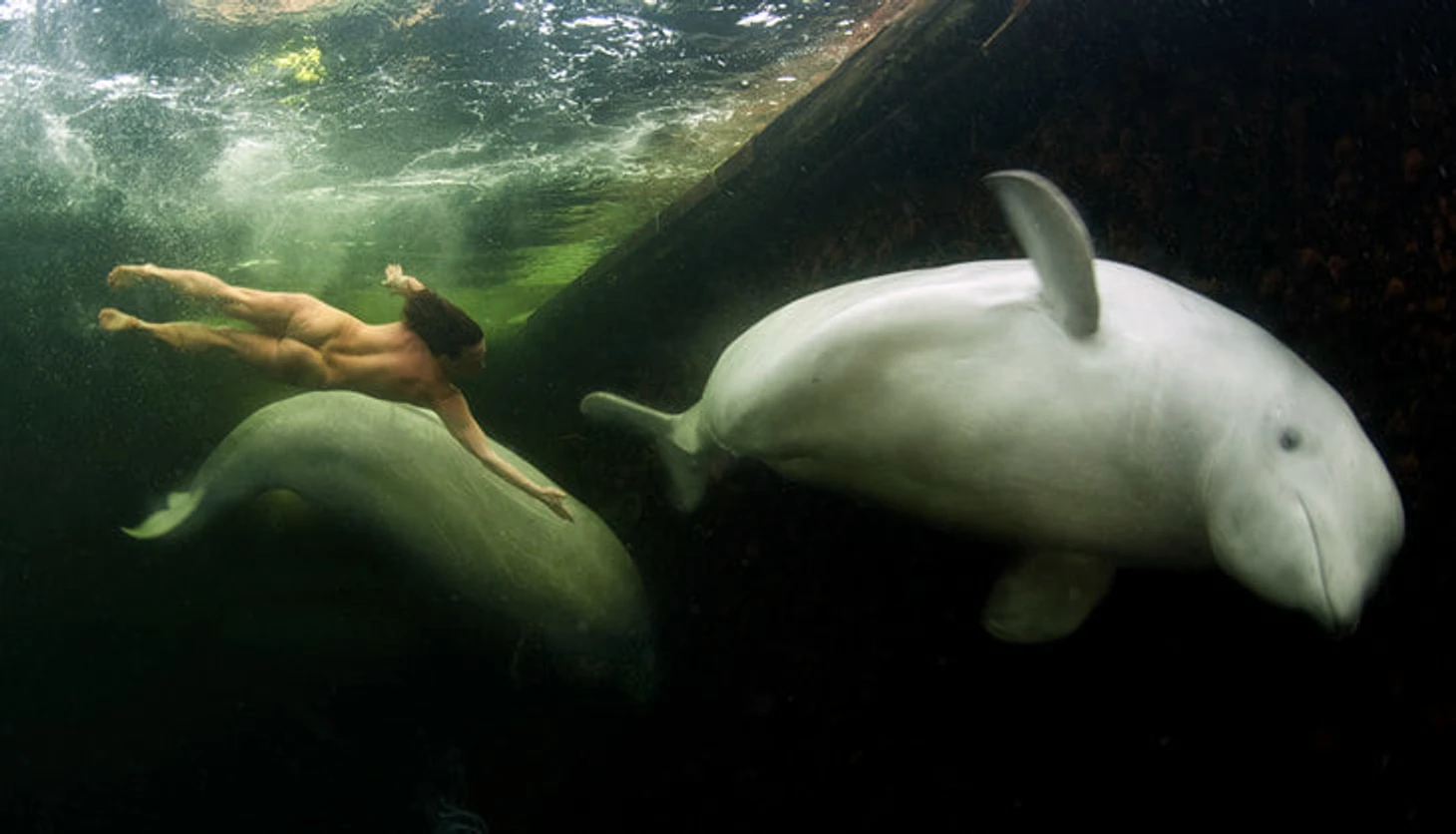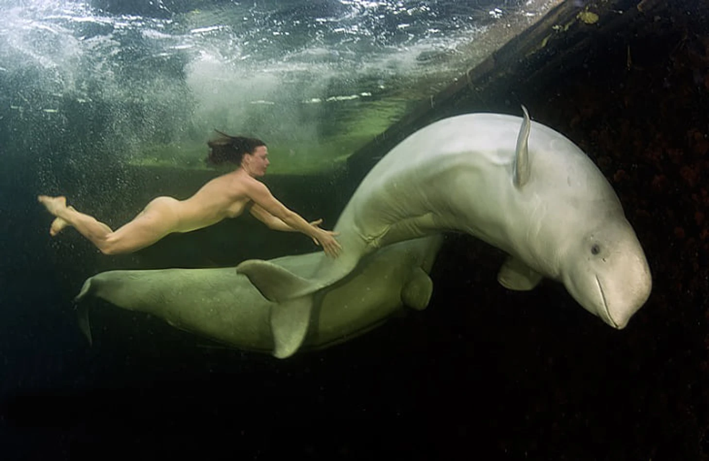 – Это фотография называется «Мы с тобой одной крови». Она из проекта «Принцесса китов». Его так назвали редакторы Daily Mail – Princess of Whales. Это довольно-таки известный наш проект 2011 года. На нем двукратная чемпионка мира и двукратная рекордсменка по фридайвингу Наталья Авсеенко (читайте ее интервью – как жить в ледяной воде и не болеть – Sports.ru) плавает с двумя белухами на Белом море. Температура воды минус два градуса.