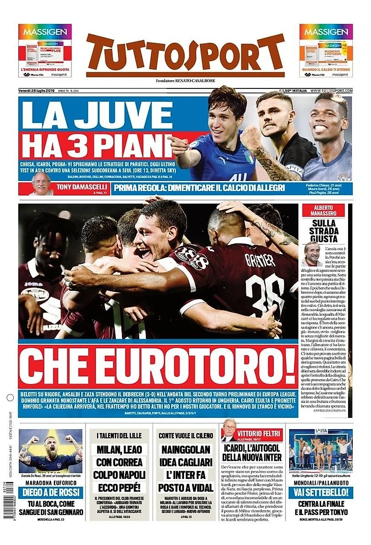 Каков ЕвроТоро! Заголовки Gazzetta, TuttoSport и Corriere за 26 июля