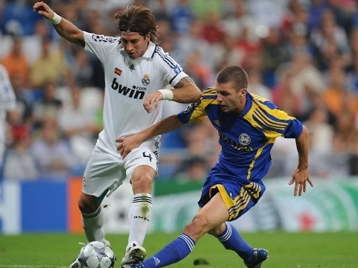 В первом же туре "БАТЭ" отправились на "Сантьяго Бернабеу". Посмотреть на "БАТЭ" пришло аж 65000 человек. Думаю, что "БАТЭ" никогда не играли при такой поддержке соперника, да и состав Реала переполнял огромным количеством звезд, "галактикос" одним словом. Итоговые (2-0) выглядят очень достойно, Сергей Веремко потом будет рассказывать, как он пропускал от Рамоса и Рууда Ван Нистерлоя.
