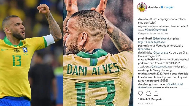 Экс-игрок «Барселоны» Дани Алвес разместил в своем Инстаграм пост в котором с юмором подошел к поиску нового клуба.