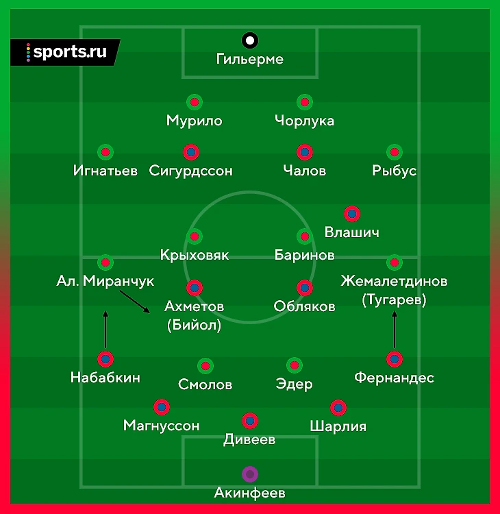 На 68-й минуте Мурило замыкал очередной навес Миранчука со штрафного – выше. На 81-й Миранчук бил из штрафной после быстрого короткого розыгрыша углового от Жемалетдинова – опасно, но тоже выше. И все.