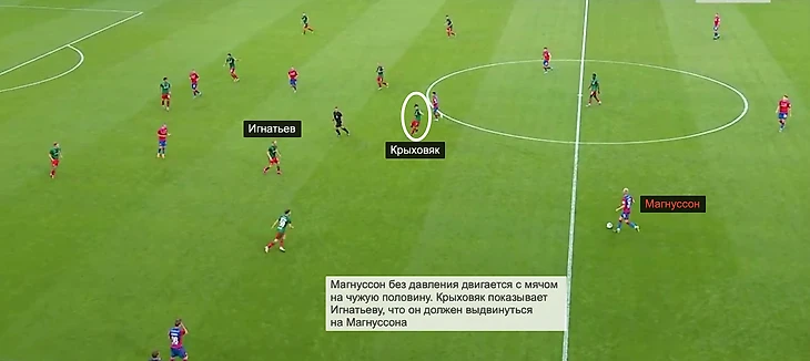 Такие показатели атакующих игроков ЦСКА – заслуга системы Семина (в том числе с новой ролью Игнатьева), но дискомфорт Влада все равно был заметен: например, он далеко не всегда выбрасывался на защитника ЦСКА, двигающегося с мячом (чаще всего это был Магнуссон).