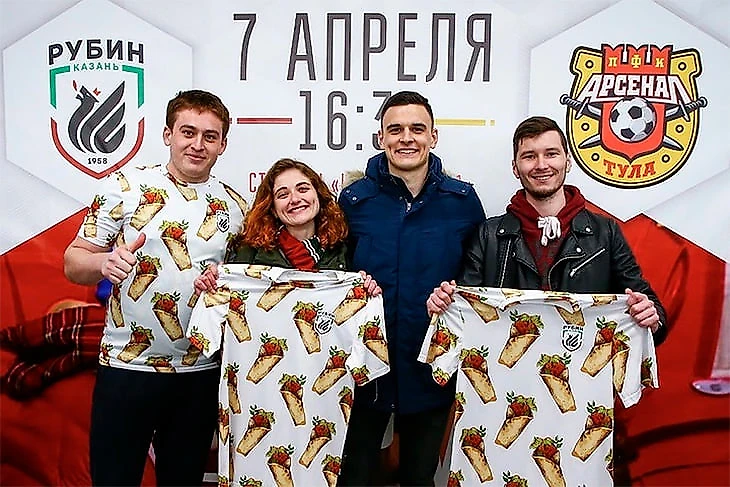 Байрамов работает в клубе чуть больше года, за SMM отвечает в одиночку и помогает другим отделам с креативом. Например, мотивирует вписываться в актуальные истории и участвовать в челленджах, а в апреле предложил провести на домашнем матче чемпионат по поеданию шаурмы. Вы наверняка помните, как мемом стал эпизод трансляции матча «Енисей» – «Рубин»: из-за проблем с сигналом в эфире много раз показали, как молодой человек на гостевом секторе угощает девушку шаурмой. Тогда казанский клуб выпустил лимитированную коллекцию футболок с изображением шаурмы – «Рубин» воплотил идею «Енисея», который предложил сделать альтернативную форму по его примеру (такие футболки дарили победителям чемпионата по поеданию шаурмы и тоже продавали в клубном магазине).