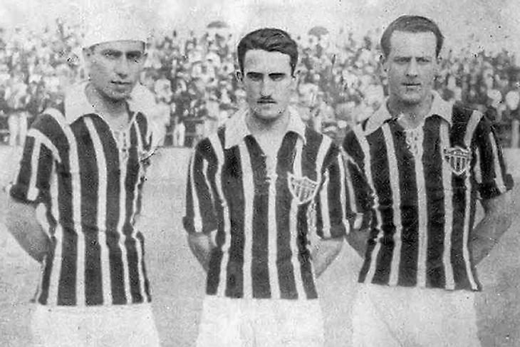 В 1927-м сформировалось наводившее ужас на соперников «Нечестивое трио» — Саид Паулу Аргес, Жайру де Ассис Алмейда и Марио де Кастро (на фото обведены, слева направо). Тогда команда под руководством венгерского тренера Йено Медгьеши снова выиграла чемпионат, а Марио де Кастро вновь стал лучшим, забив 27 мячей. Хотя удержать успех клубу не удалось (в 1928 году Кастро и компания пропустили вперед «Крузейро»), о троице из «Атлетико» заговорила вся Бразилия.