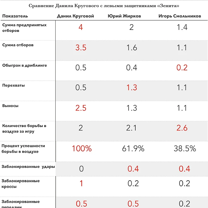 Сравнение с левыми защитниками «Зенита»