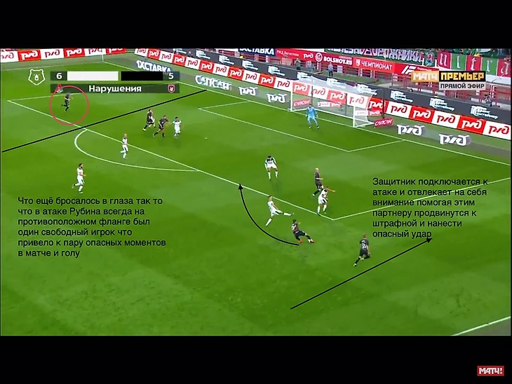 Но о чем стоит поговорить, так это об игре Рубина от начала атак до завершения. Рисунок атаки Рубина очень привлекательный для любителей вертикального футбола: множество треугольников, забегания, перегруз зон обороны соперника с выводом партнёра на выгодную позицию. И если этот Рубин будет прогрессировать так же, как они начали от первого тура, думаю, что команда закончит этот сезон довольно высоко.