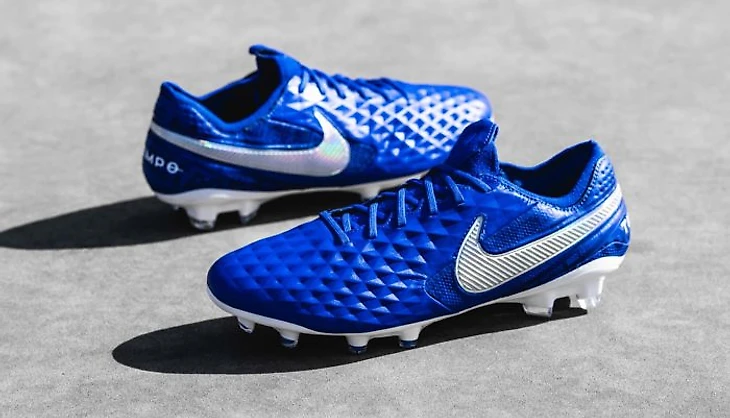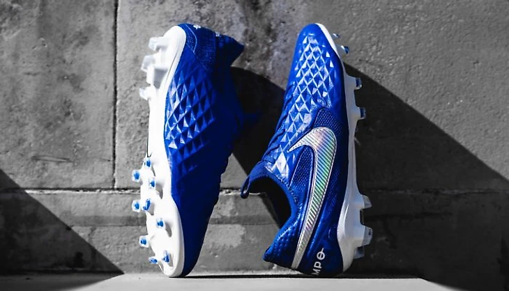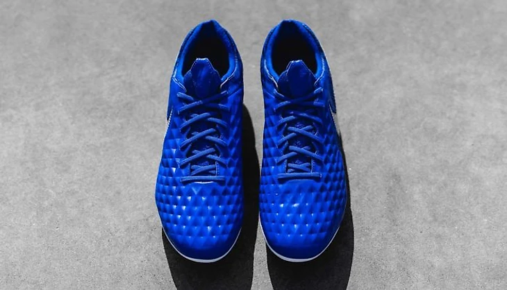 Nike, наконец, полностью закончили коллекцию «New Lights», представив Tiempo 8 в этой расцветке. Верхняя часть легендарных бутс нового поколения (если еще можно их так называть) выкрашена в «королевский голубой», а детали в белый цвет.