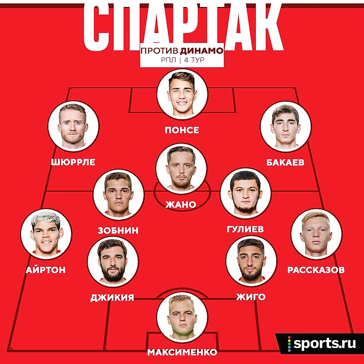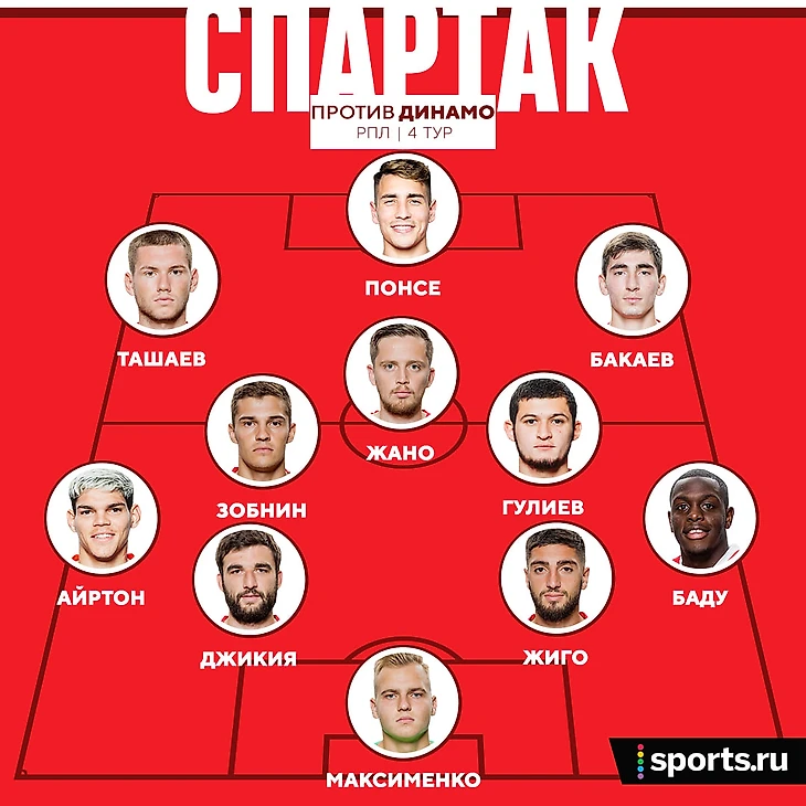 С уходом Фернандо связка Гулиева и Зобнина практически безальтернативна, а Бакаев – один из лучших на старте сезона в «Спартаке». С учетом того, что остался только один нападающий Понсе (вряд ли Ларссон будет играть в субботу), Кононову нужно выпускать десятку. Ей станет Жано – это тоже практически без вариантов, ведь Тиля все еще не купили.