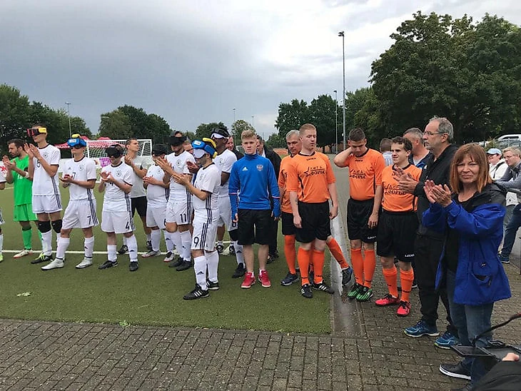 Еще раз огромная благодарность вашему сайту, читателям, футболисту Терентьеву, нашей дружбе – ведь ребята полетели на турнир. В самом Дюссельдорфе нас поселили в отличный отель, все на уровне, играли на стадионе местного клуба, пришли болельщики. Немцы умеют создать праздник футбола: вокруг работали рестораны, сосиски жарились, пиво пилось. Стадион оборудовали под незрячих: появились борта, которые достали впервые с Евро-2017, где мы стали чемпионами.