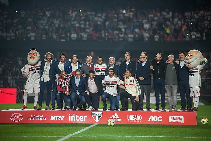 На презентацию приехали две легенды «Сан-Паулу» – Кака (начинал и заканчивал в «Сан-Паулу» и Луис Фабиано (с ним Алвес играл в легендарной «Севилье» Хуанде Рамоса). Кака вручил Алвесу свой десятый номер.