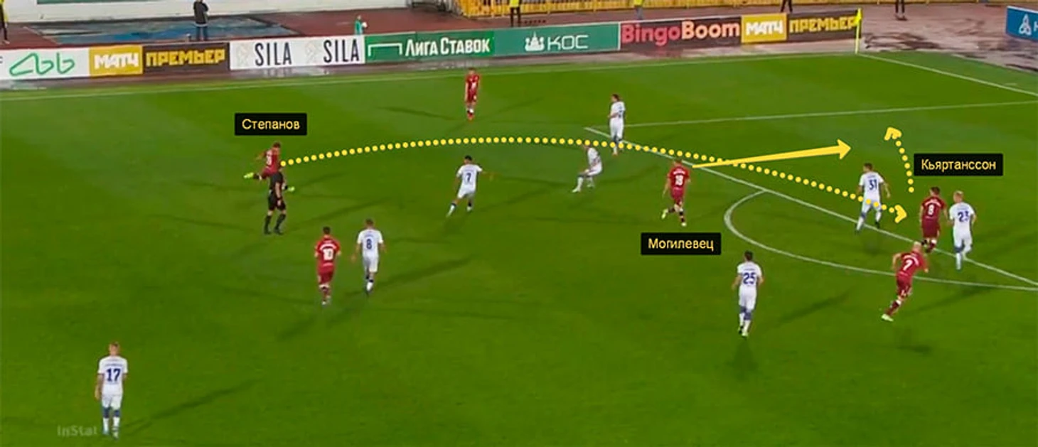 В штрафную Степанов отдавал больше всех в «Рубине» – 8 пасов, из них 7 – точные. Но над направлением навесов еще нужно работать – пока они летят слишком далеко от ворот. Получается не очень опасно, даже когда мяч доходит до Кьяртанссона.