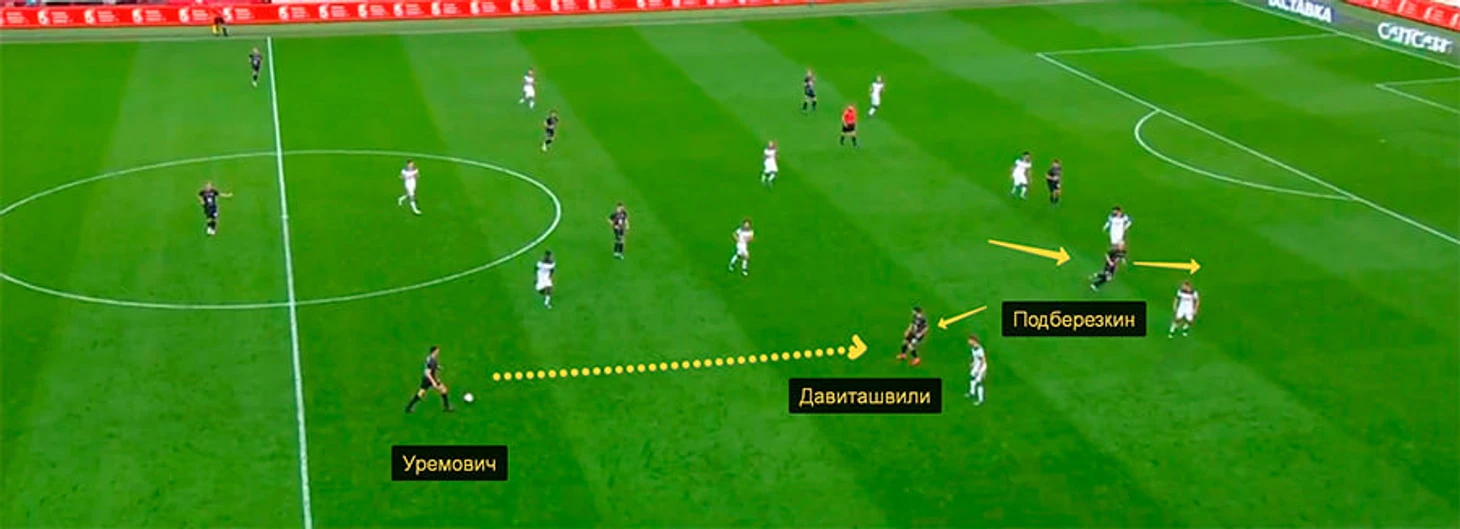В конце матча с «Локо» Шаронов дважды менял схему: после выхода Хвичи Кварацхелии вместо Давиташвили перешел на 4-3-3 (Башкиров отправился на правый фланг атаки), а в самой концовке – на игру в пять защитников (Данил Степанов вышел вместо Подберезкина и занял место левого центрального защитника).