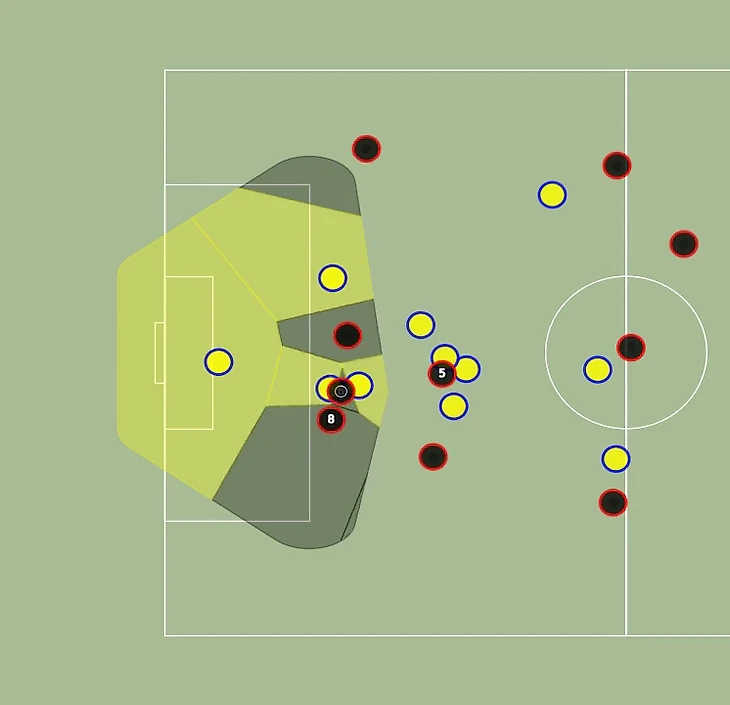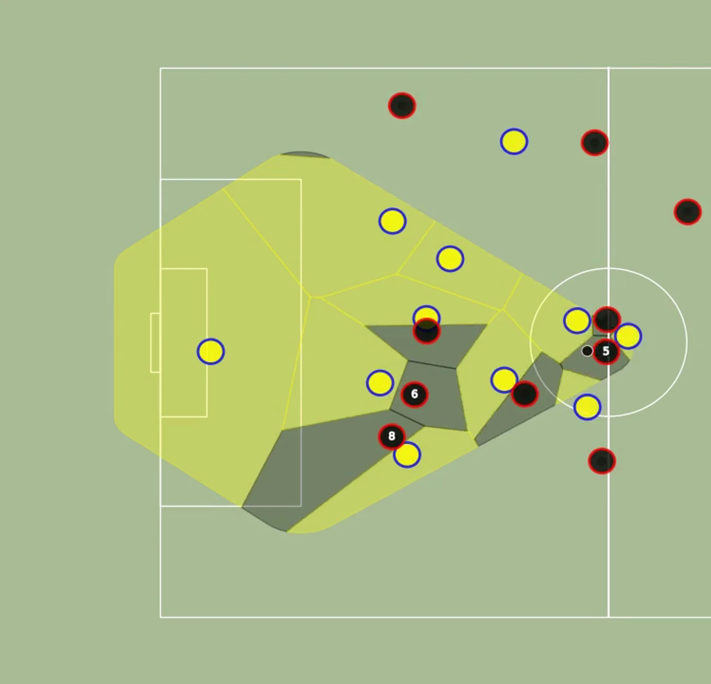 Теперь главным вызовом становится конвертация Диаграммы Вороного в плоскость чисел. Мы можем следить за цифрами, чтобы оценивать происходящее на поле. И вот здесь наше аналитическое комьюнити возвращается к старым добрым Ожидаемым Угрозам (Expected Threat/xT)