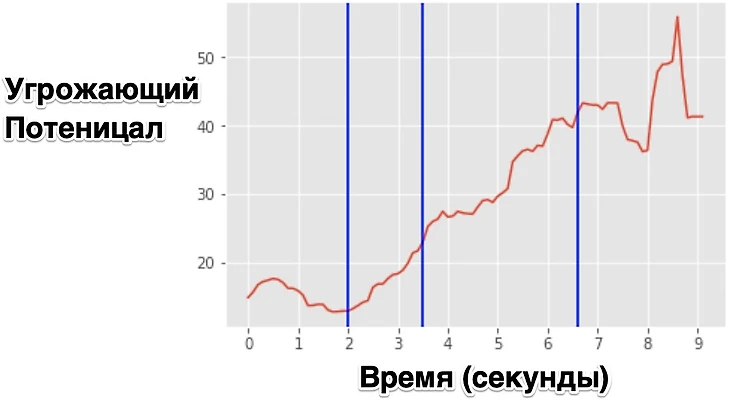Интуитивно мы можем сказать, что уровень угрозы постепенно увеличивался. Давайте посмотрим на то, как это коррелирует с подсчетом Угрожающего Потенциала: