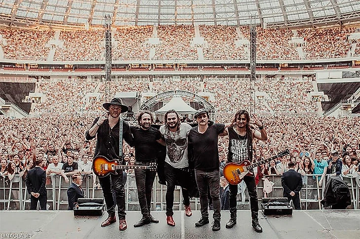 – Мне они всегда нравились, но раньше еще были беговые дорожки. Сейчас это не «Лужники» моего детства, а как будто новый стадион с большей энергетикой. И история тех дней для меня растворилась. Не так, как в «Олимпийском», который не перестраивали. И работа журналистом в них мне помогла, потому что в 2014-м на Aerosmith произошла накладка с пропусками. Я вышел в гримерку, а обратно перед выступлением меня охранник не пускал – не тот бейджик. Я пытался объяснить, что только что был на сцене на саундчеке, но бесполезно. Понимаю, что нам уже начинать, пора на сцену. Тут вспоминаю устройство стадиона, через подтрибунное помещение перебежал незаметно, прополз под одной штукой и спокойно вышел к сцене. Там меня узнали и пустили. В «Лужниках» старые знания не помогли бы. Но сама организация мероприятия была более расслабленной, более дружеской.