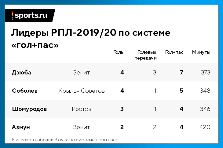 Возможно, это поможет Артему замахнуться на историческое достижение: в эру открытой статистики (с сезона-2014/15) никто не становился лучшим ассистентом РПЛ два сезона подряд.