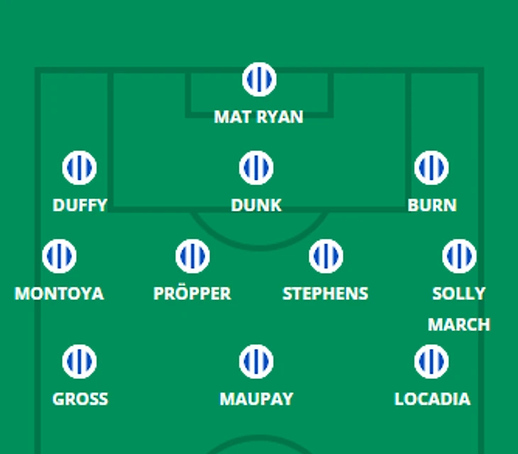 Брайтон впечатлил результатом в первом туре, но я не очень верю в суперперспективы этой команды. Дергаться и брать со штрафными очками кого-то из оборонцев Брайтона - это слишком большой риск. По кандидатурам ничего не изменилось. Райан, Данк, Даффи плюс Мопе как бы... Да и Монтойя высоко играет. Почти как лестерский Перейра. Есть над чем думать.