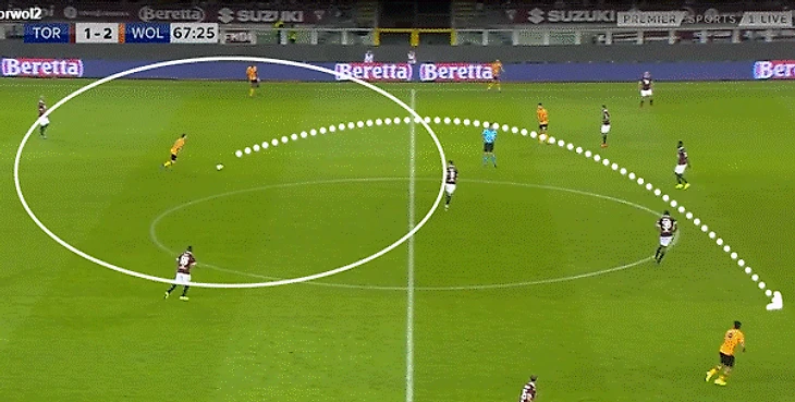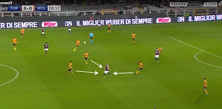 Во втором тайме у «Торино» при попытках высокого прессинга появились свободные зоны, которыми пользовались нападающие «Вулверхэмптона».