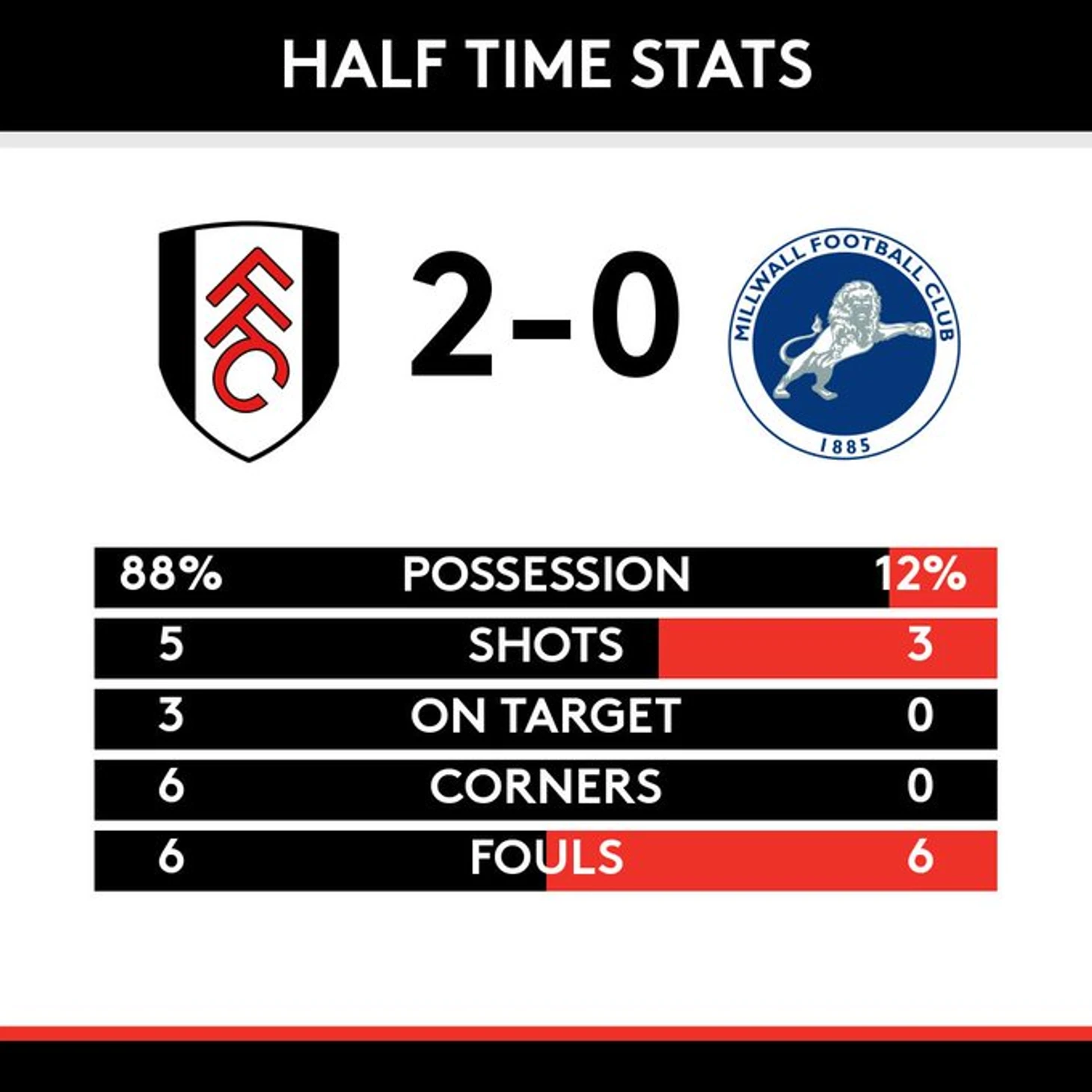 Потом, в среду, была домашняя игра с Миллуолом, которая кроме довольно неприличного счета запомнилась ещё совершенно фантастическим владением ребят из доков - чуть-чуть не дотянули до шестнадцати процентов. Впрочем, это ничего, после первого тайма было вот так:
