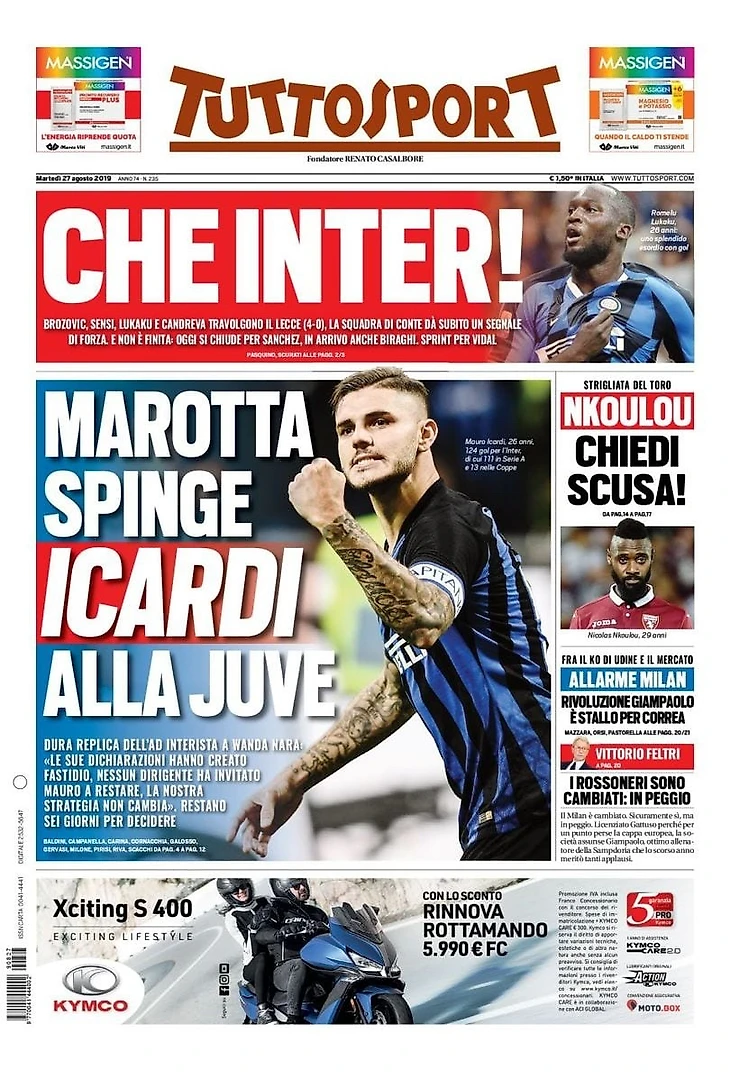 Смотрите, каков «Интер»! Заголовки Gazzetta, TuttoSport и Corriere за 27 августа