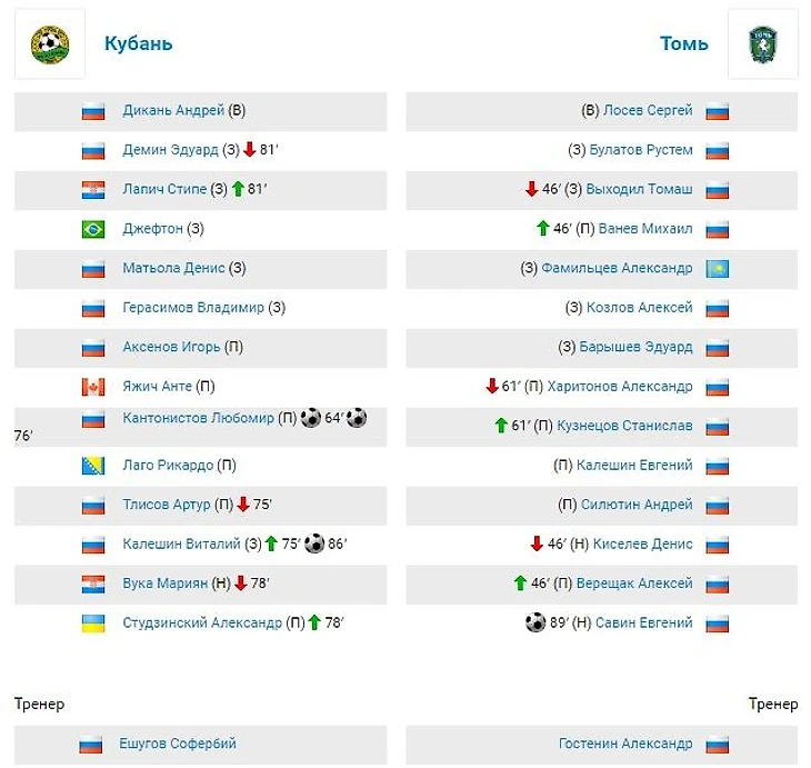 Неофициальный сайт «Томи» так описывает ту игру: «Томичи выступали экспериментальным составом под руководством второго тренера Василия Баскакова и, тем не менее, более 60 минут противостояли основному составу «Кубани». Однако в итоге хозяева поля заслуженно победили 3:1».
