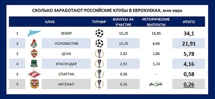 ● Также определенную сумму УЕФА выплатил бы российскому клубу от продажи ТВ-прав.