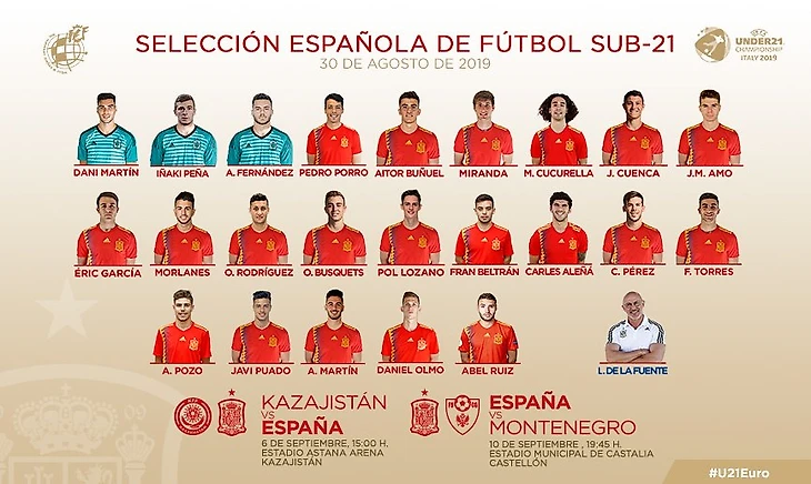 В сборную Испании U21 вызваны Карлес Аленья (основная команда), а также Карлес Перес, Хорхе Куэнка, Абель Руис и Иньяки Пенья (все "Барса Б"). Также в состав попали Ориоль Бускетс и Хуан Миранда, которые в данный момент арендованы "Твенте" и "Шальке". Что интересно, Куэнке и Руису всего по 19 лет, но они вызваны в старшую команду.