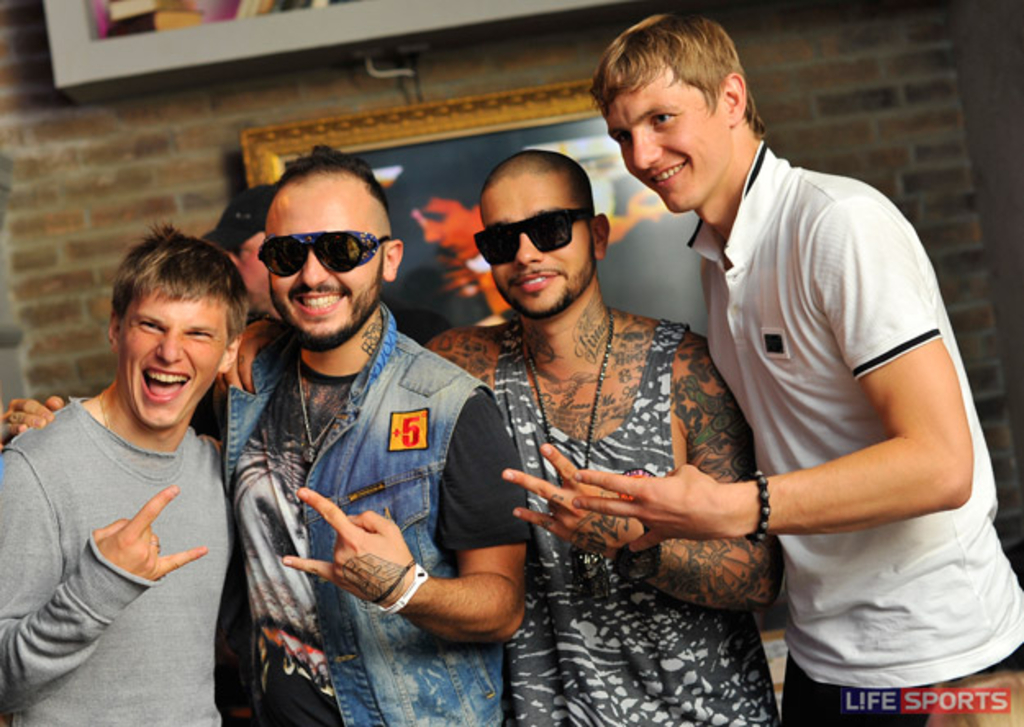 Если бы Андрей не играл за "Арсенал", он бы, наверное, до сих пор ходил везде в форме "Барселоны". Молодой Андрюша любил развлекаться с друзьями. Например здесь, они кушают клубнику со сливками на квартире у Кержакова, потому что парня слева не пустили в клуб из-за слишком низкой талии спортивных штанов.