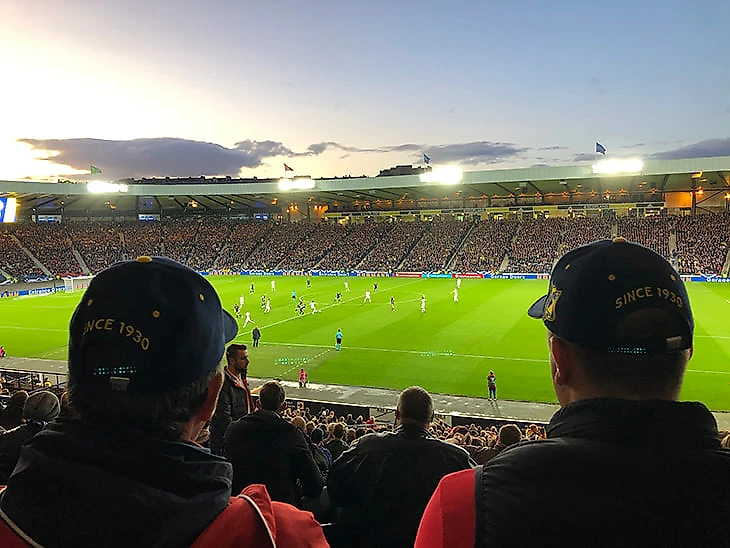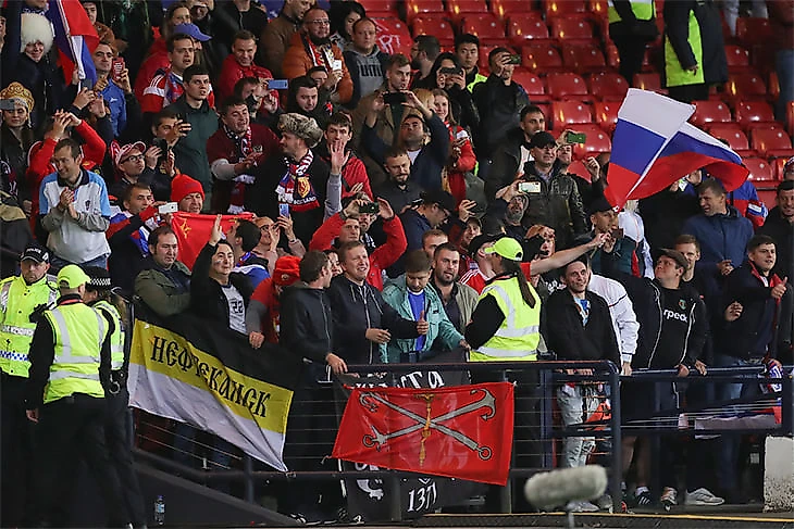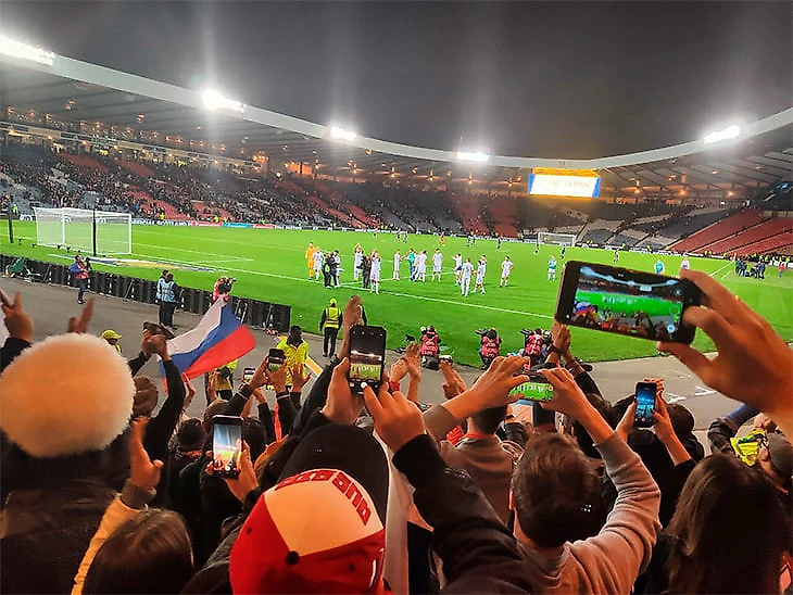 Здоровая и продуманная ярость. Точно так же за сборную болели с центральных трибун. Я видел не раскрашенных людей в кокошниках (они, конечно, были), а группу прекрасных в своих эмоциях людей, которые вставали на любом опасном моменте, не замечая шикания шотландцев, мочили «Россия» и своевременно подбадривали игроков. Болельщики не кричали, не вопили, не матерились, а именно мочили.
