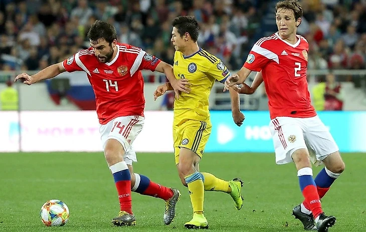 Опасно сыграл Ионов, но наткнулся на Малого. Дальше атака сорвалась, но мяч был выбит на угловой, который ничего не принёс сборной. На 72-й минуте Дзюба заработал угловой. Абикен несколько раз врезал по ногам Головину, который в свою очередь сразу встал, но все же заработал штрафной. Удар был исполнен неточно.