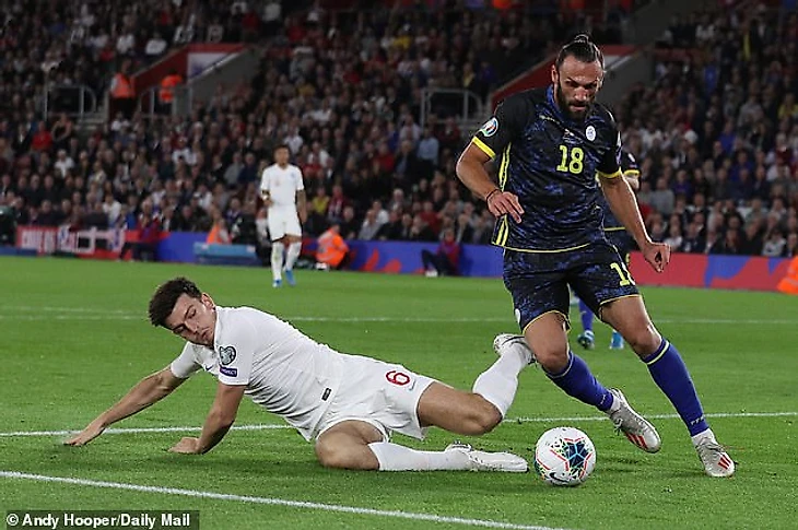 После длинной передачи в центр поля мячом завладели косовары, а не англичане. И это было одной из главных тем того вечера. Из этой ситуации получилось, что Валон Бериша спокойно взял мяч под контроль и получил возможность атаковать линию обороны Англии. Косовары слишком часто пользовались такими карманами.