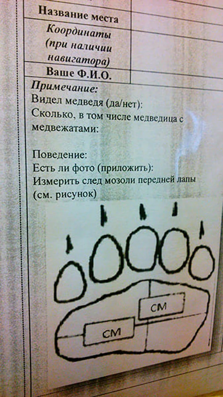 «Где мужчины? Так праздник же, в праздник мужчины отдыхают», – иронично заключает одна из них. А я между делом рассматриваю странную памятку, где мне предлагают измерить размеры медвежьих лап.