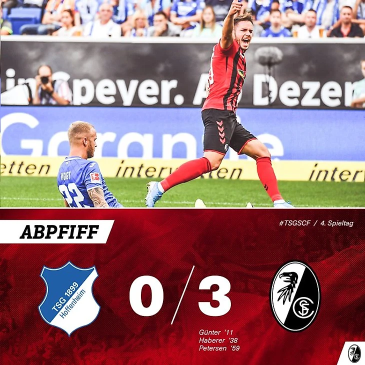 С комфортным для себя счётом гости отошли назад и внимательная защита не позволила «Хоффенхайму» отыграть хоть один мяч. А бонусом к крупной сухой победе в дерби стало для «Фрайбурга» третье место в лиге - между «Дортмундом» и «Баварией».