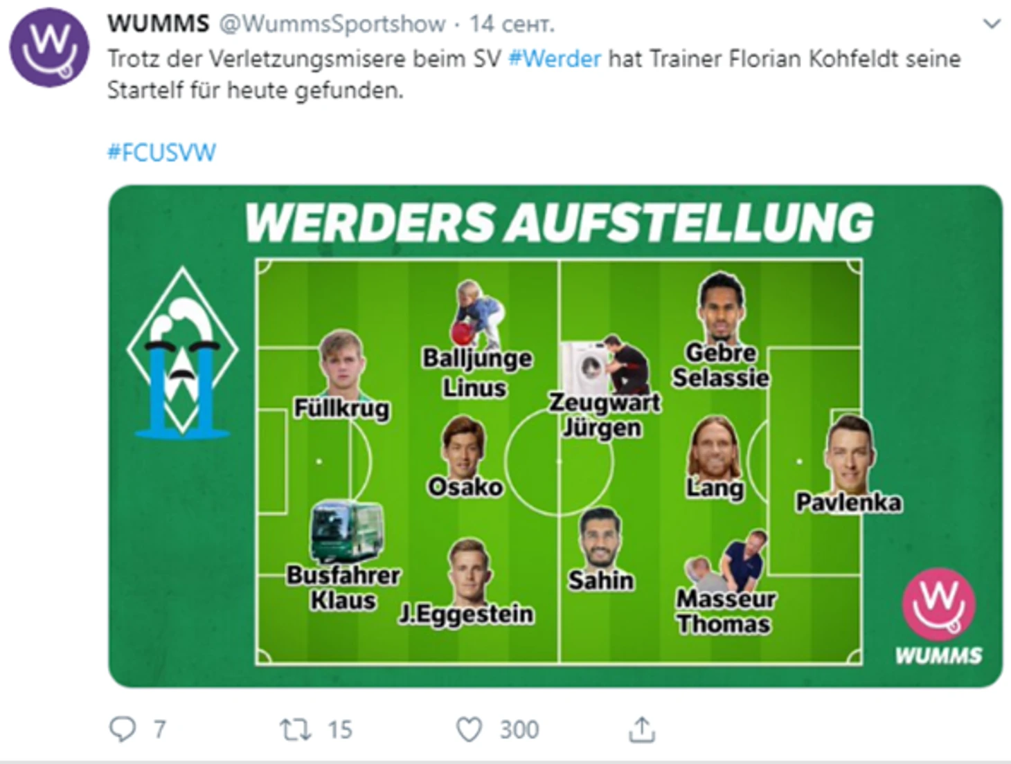 Несмотря на травмы травмы у СВ #Werder Тренер ФлорианКохфельдт нашел свою стартовую команду на сегодня.