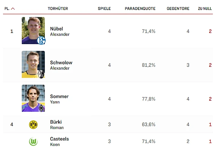 *игрок – кол-во игр – % отраженных ударов – пропущено мячей – матчи на ноль