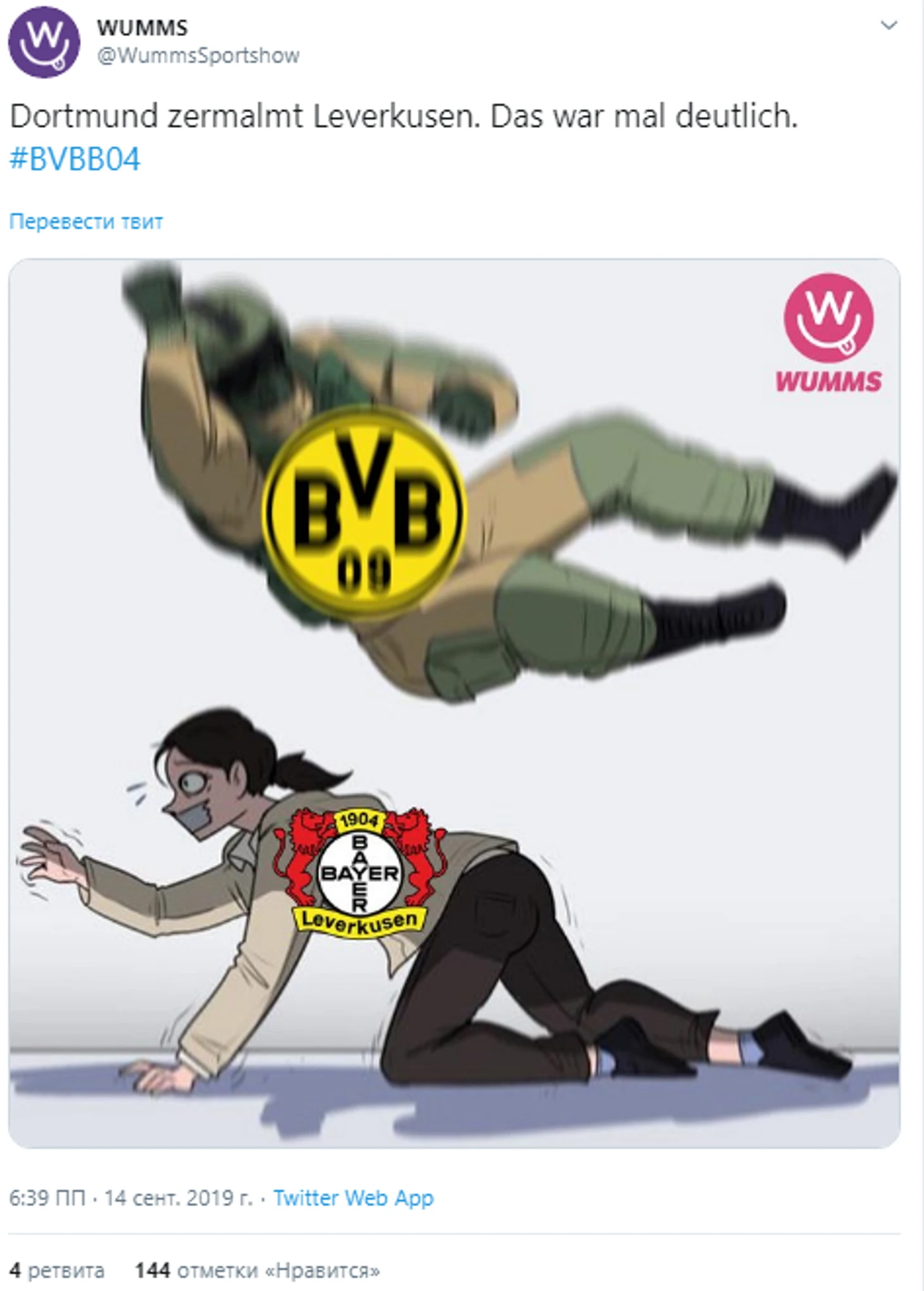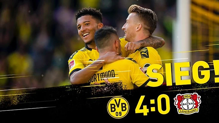 Беспроигрышная серия «Байера» оборвалась в Дортмунде с разгромным счётом, а «Боруссия» реабилитировалась после поражения в Берлине и вновь поднялась в таблице, но пока только на вторую строчку.