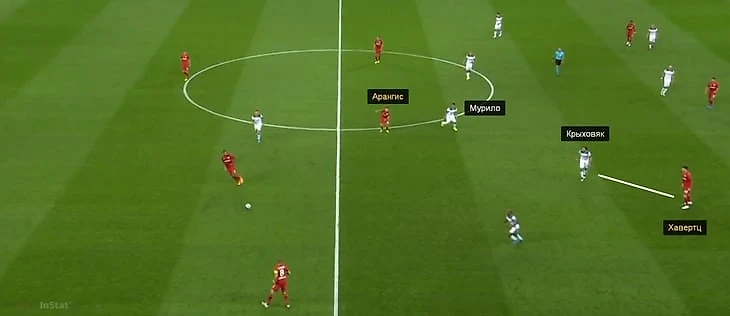 Во-первых, потому что Хавертц не привязан к центральной зоне и сваливается в полуфланги. Такие эпизоды случались и в матче против «Локомотива» – тогда по нему играли Крыховяк или Баринов.