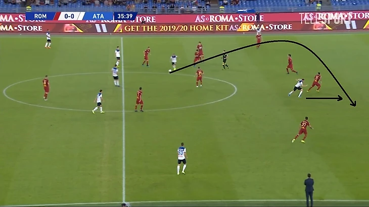 2. Схема в три защитника является новой для «Ромы» и созидательные действия давались с огромным трудом, хотя здесь стоит отметить и заслугу «Аталанты».