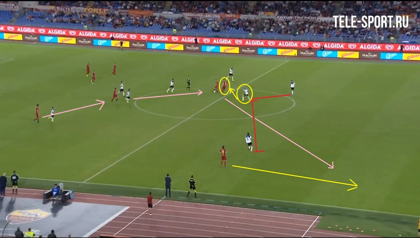 1. Высокий прессинг поставил в тупик футболистов римского клуба, которые лишь однажды смогли найти разумный выход из-под давления соперника.