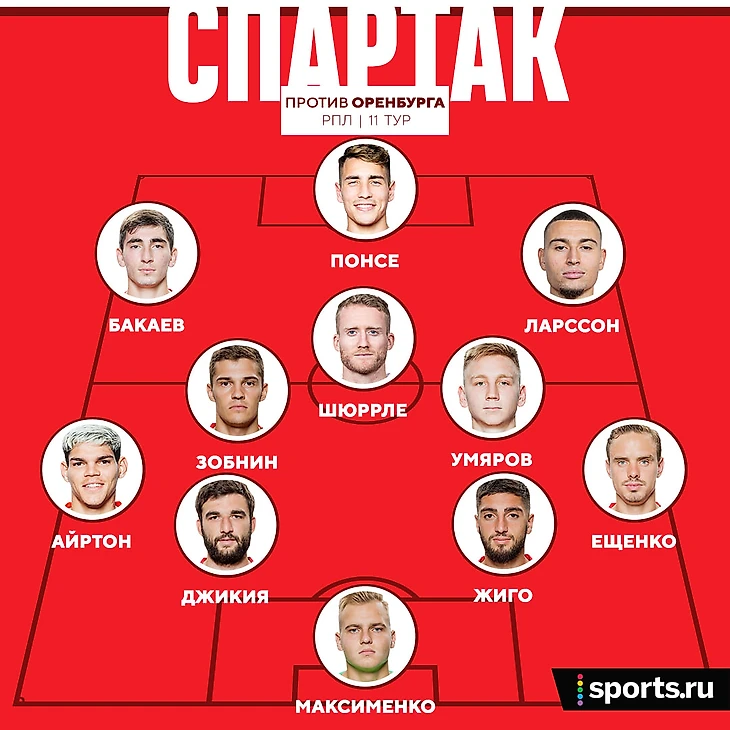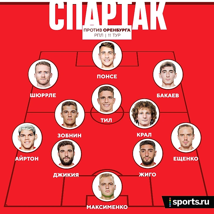 📊 Шюррле или Понсе в атаке? Выбираем состав «Спартака» на матч с «Оренбургом» 👍👎