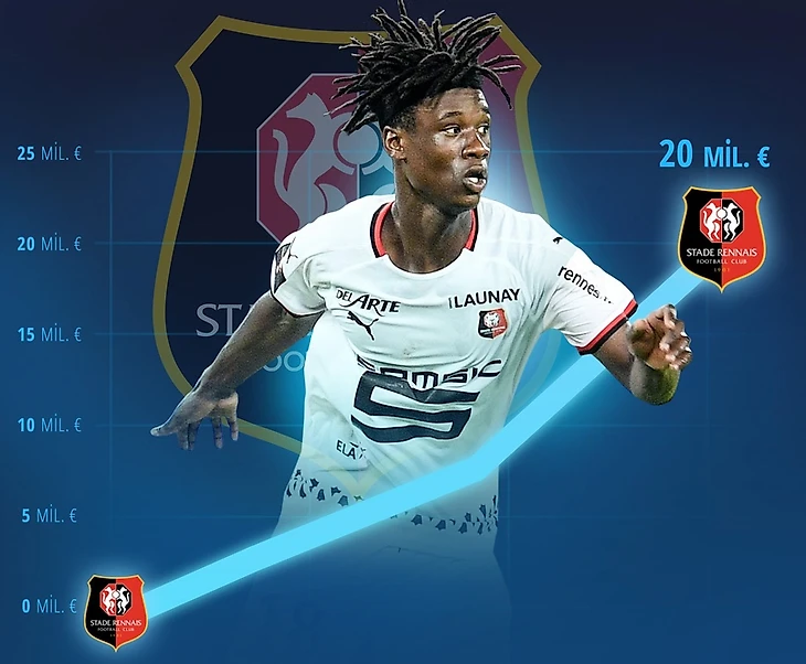 Лучший игрок августа, заставивший о себе говорить после победы над ПСЖ, полузащитник Эдуардо Камавинга, ожидаемо, возглавляет список самых подорожавших игроков. 16-летний хавбек закрепился в основе «Ренна» и стал самым молодым в истории футболистом, которого признали игроком месяца в Лиге 1.