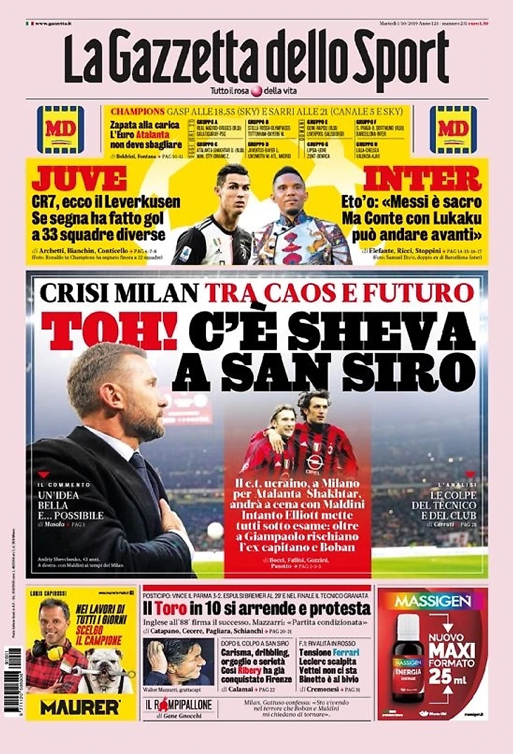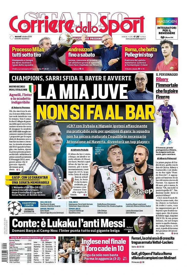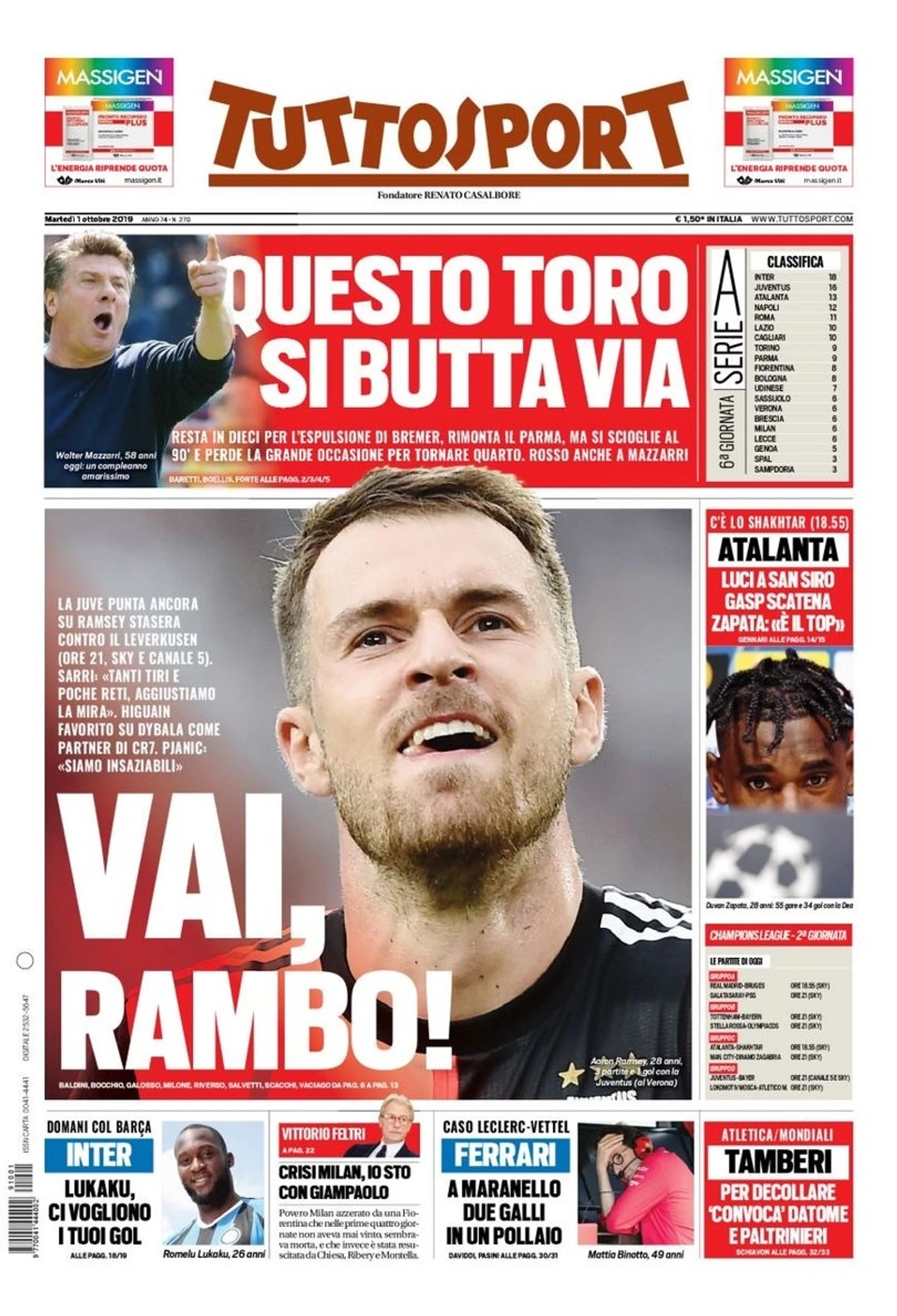 Давай, Рэмбо! Заголовки Gazzetta, TuttoSport и Corriere за 1 октября