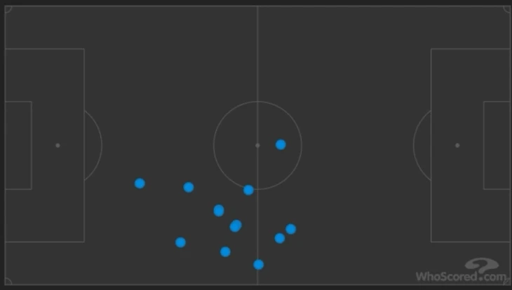 Зоны с которых Кроос совершал лонгболлы в матче с Атлетико.