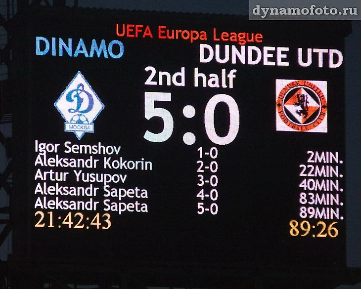 1. «Динамо» – «Данди Юнайтед» (Шотландия) – 5:0