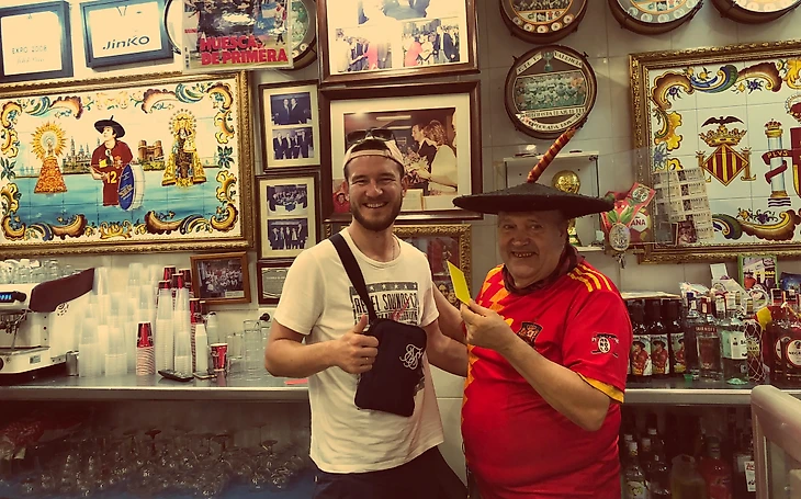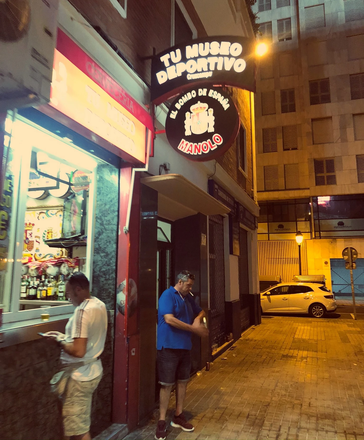 После матча мы зашли в бар к знаменитому Маноло. Он сразу надевает свою шляпу и готовится сфотографироваться, а еще у него дешевое пиво и веселая атмосфера. Всегда интересно было посмотреть на людей, которые не заходят на стадион, а смотрят матч в баре около.