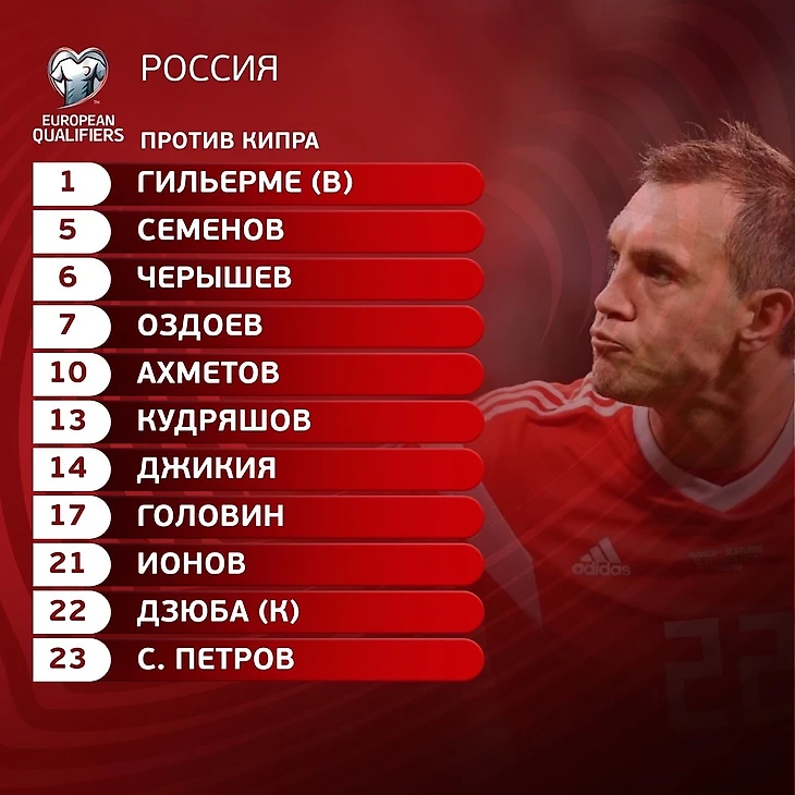13 октября 2019, 15:44 1 мин. Стартовый состав Сборной России на матч квалификации ЕВРО 2020 с КипромААГАвтор524 подписатьсяИльзат АхметовЦСКА