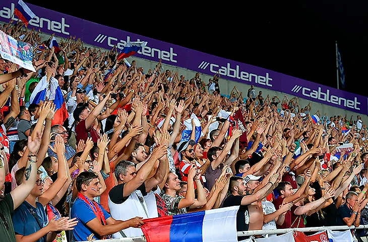 2. Редкие болельщики сборной Кипра (пришли дети из спортшкол и пара человек в флагах) расстроились из-за удаления и каждый раз мощно освистывали Петрова, когда он получал мяч. Нашим секторам это не понравилось: трибуны аплодировали Петрову и стоя провожали на вынужденную замену.