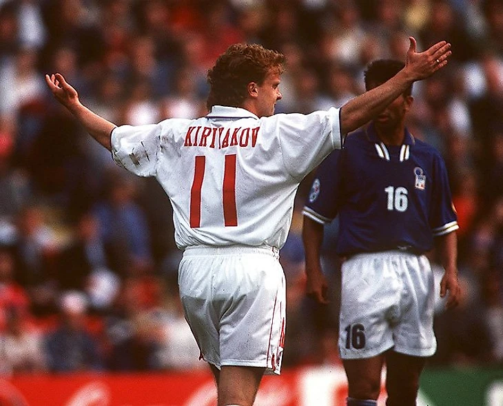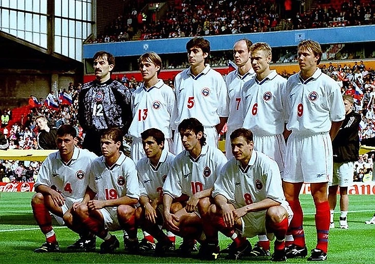 Перейдём к нашей сборной. После Павла Садырина,под руководством которого наша сборная провалилась на ЧМ-1994, ожидаемо на пост главного тренера сборной был приглашен Олег Романцев, который,возглавляя красно-белых,доминировал в национальном первенстве.Отборочный этап наша сборная прошла очень гладко,опередив сборные Шотландии,Греции, Финляндии, Фарерских островов и Сан-Марино. Потеряла сборная тогда всего 4 очка, сыграв дважды в ничью с шотландцами (0:0 дома и 1:1 на выезде).Жребий привел Россию в группу смерти со сборными Италии,Германии и Чехии. Несмотря на это,ожидания болельщиков были очень высоки и они были вполне оправданы. Уверенно пройденный отбор, 7 побед и одна ничья в товарищеских матчах (считая с начала 1996 года). Сюда ещё добавьте один из сильнейших состав сборной в истории,и очень конкурентоспособный по европейском меркам. Ровно половина состава той сборной играла в Европе и была на пике своих карьер. Это и игравшие в Испании Виктор Онопко и Валерий Карпин,и игравшие в Италии три Игоря : Шалимов,Колыванов и Симутенков,не забываем про "немцев" Кирьяков и Бесчастных,а также Канчельскиса,Мостового и двух стражей ворот : Харина из Челси и нынешнего тренера нашей сборной,игравшего в австрийском Тироле. Плюс лидер Спартак Илья Цымбаларь и подающие надежды Радимов,Хохлов и Яновский. Согласитесь,по именам очень достойная была заявка,а это я не всех привёл.Но как это часто в футболе бывает,на поле выходят не имена и всё зависит не только от статуса футболиста.