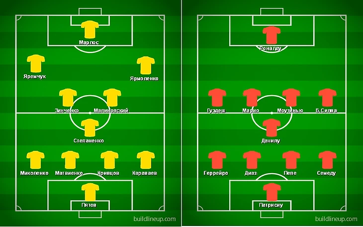 Первый гол пришел после подачи углового – Марлос подал, Кривцов выиграл верх и ударил, Патрисиу отбил, первым на мяче был Яремчук – 1:0.