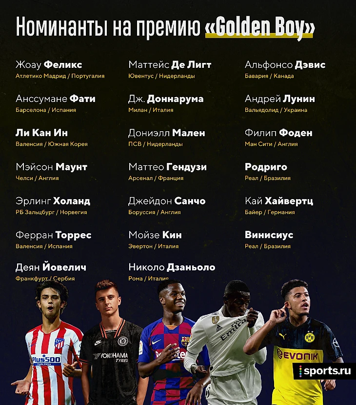 Феликс, Санчо, Фати и Де Лигт – в двадцатке финалистов Golden Boy. Кто провел год круче?
